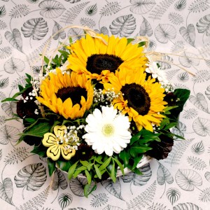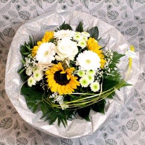 - Blumengesteck mit Sonnenblumen, Germini und Grün in 2 Grössen.